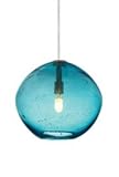 Diffuser:Aqua, Finish:Satin Nickel, Mounting:Monopoint Mount, Light Bulb:(1)35w T5 GY6.35 12v Xenon Irregular round-shaped glass with a hand-blown organic seeded technique. Includes field-cuttable suspension cable Includes round flush canopy Finish: Satin Nickel - Glass: Aqua Lamp Type: GY6.35 Xenon